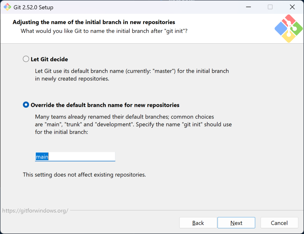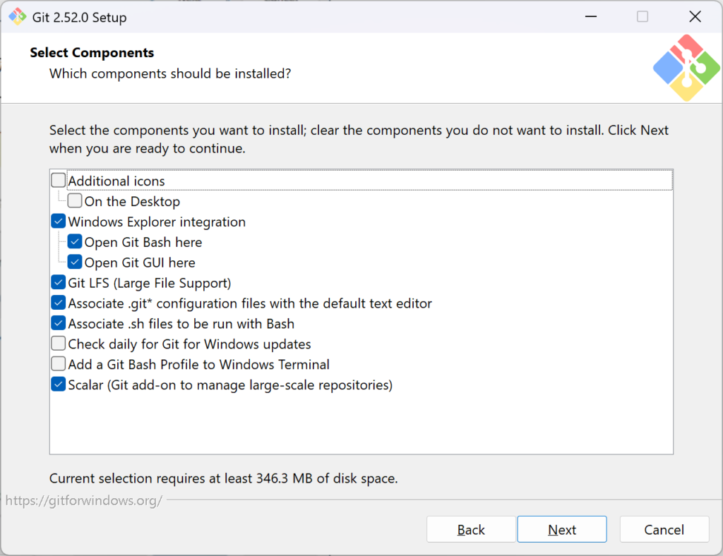 - On the Desktop:デスクトップにGitのアイコンを作成するかどうか