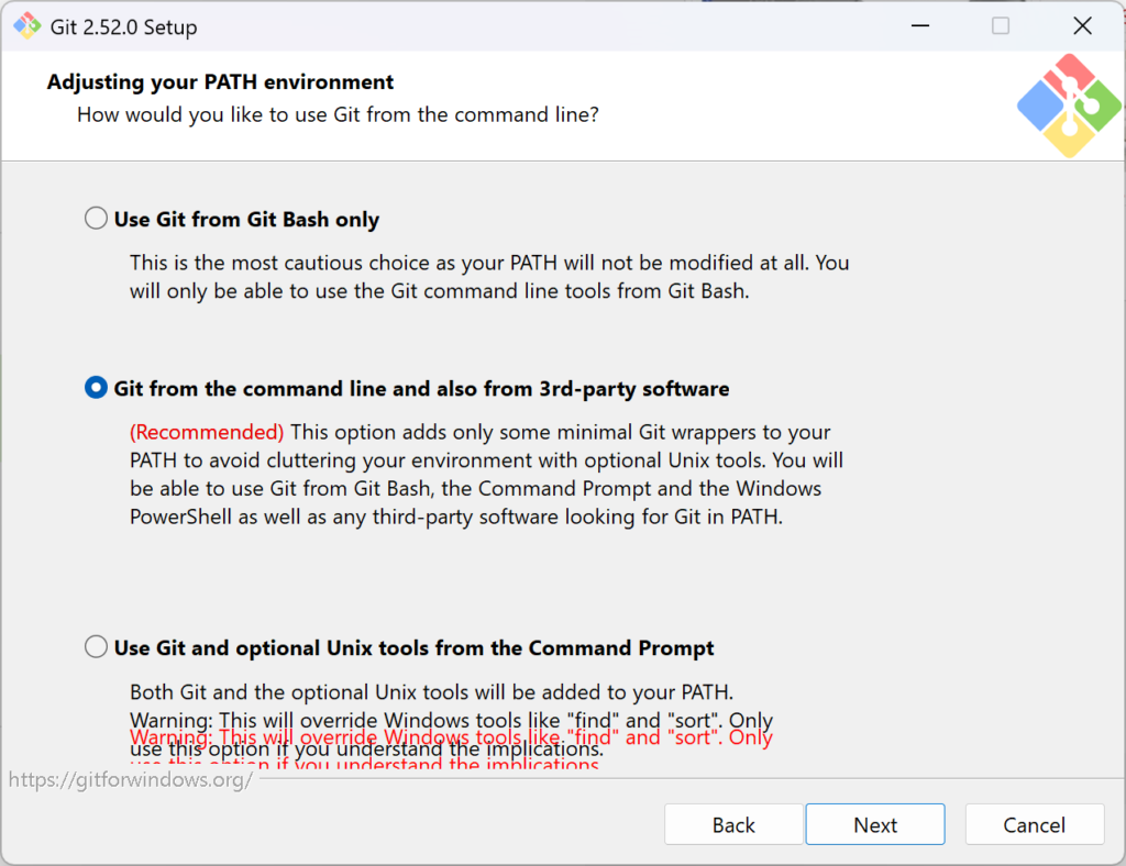 - GitだけでなくUnixツール(find、sortなど)もPATHに追加