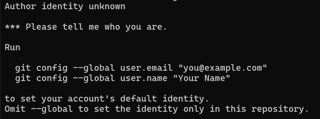 コミットしたら、Author identity unknownエラー。