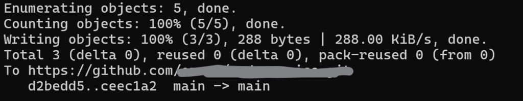 Writing objects: 100% (3/3), 288 bytes | 288.00 KiB/s, done.